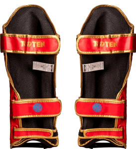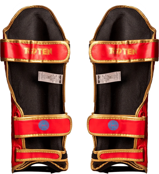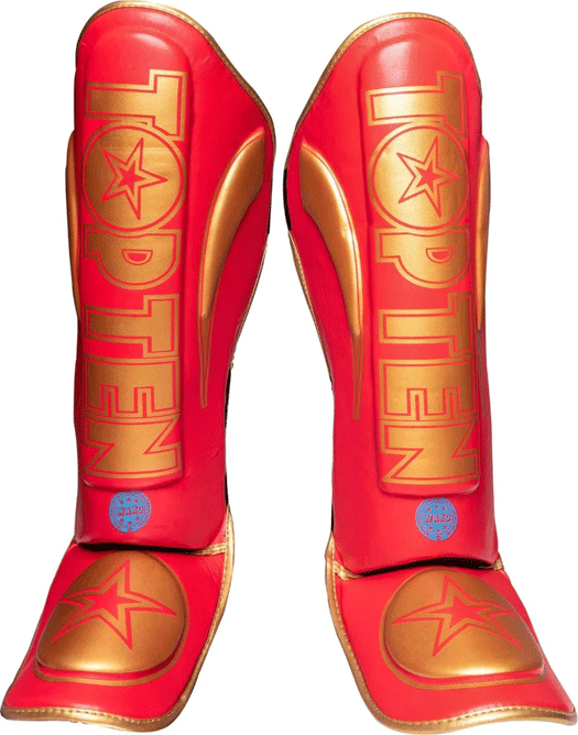 Chrániče holene a priehlavku Top Ten Superlight Wako červená vďaka ergonomickému tvarovaniu StarLight chránia presne podľa polohy nohy.