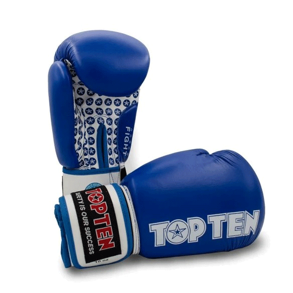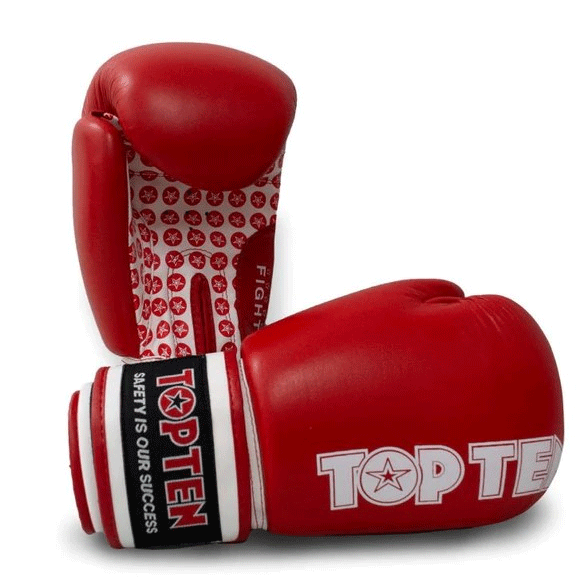 Rukavice Top Ten Fight sú určené pre box a kickbox. Kvalitná 1,2mm hrubá hovädzia koža je na vrchnej strane, oblasť dlane je z kvalitnej Nubuk koženky. Tlmiaca pena PPS je výborná pre ochranu kĺbov a tlmenie nárazov. Vnútorná podšívka z polyesterového saténu je pohodlná a zmierňuje zvýšené potenie.