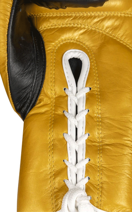 Kožené šnurovacie rukavice využivané prevažne na zápas v profi ringu. Výborné aj na tréning(šnúrky umožňujú častokrát lepšie,tesnejšie nasadenie) ak sa zmierite s trochu komplikovanejším nasadzovaním...Tento model patrí k najlepšie spracovaným - použitá výberová koža a ako tlmiaca výplň latexová pena. Rukavice perfektne sedia na ruke.