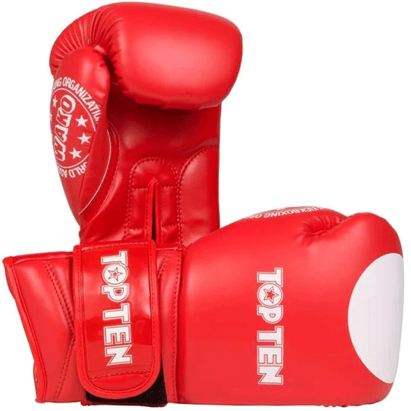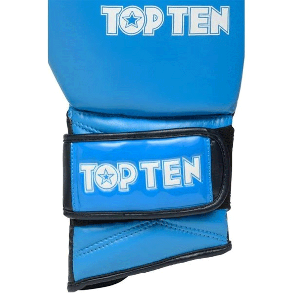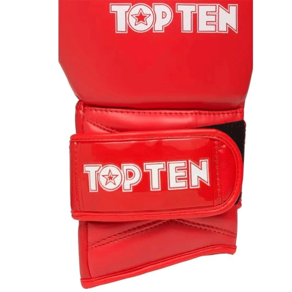 Rukavice Top Ten WAKO GT 10OZ kombinujú pohodlie ochranu a volnosť pohybu. Vďaka prepracovanému tvarovaniu - skrátené na vnútornej strane a predĺžené na vonkajšej poskytujú lepšiu oporu zápästiu.